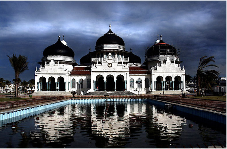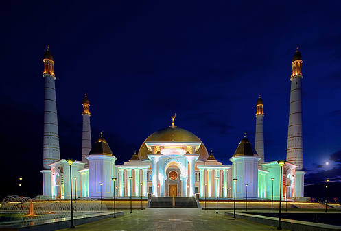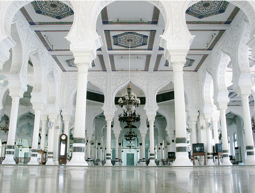 Dengan Minaret tertinggi di dunia 210m. Boleh menempatkan jemaah seramai 25000 org
